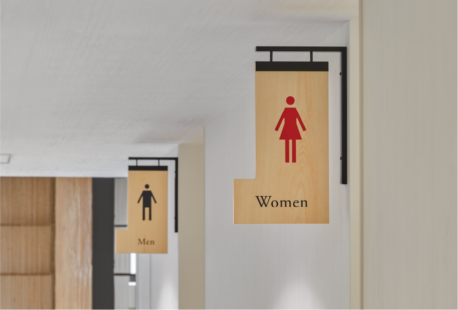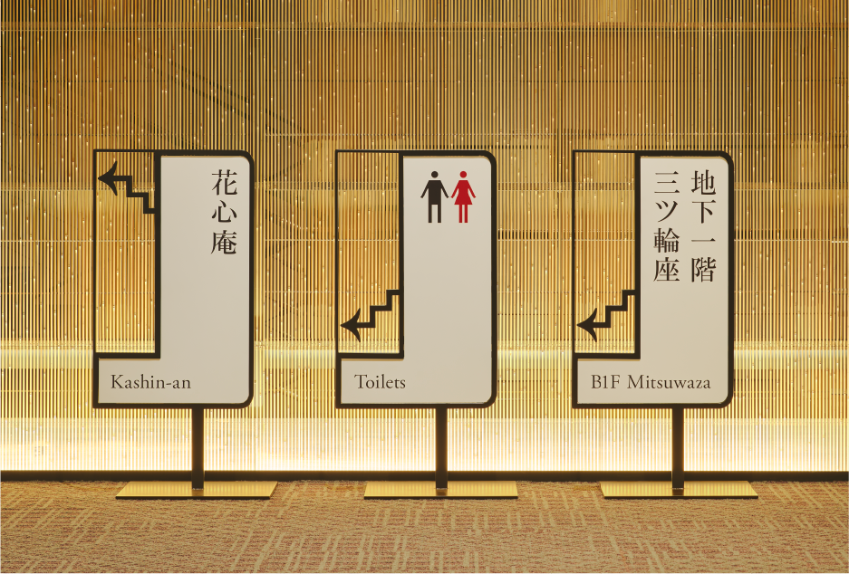 施設内の主要な室名サインには原凌霜氏の書を使用しています。
